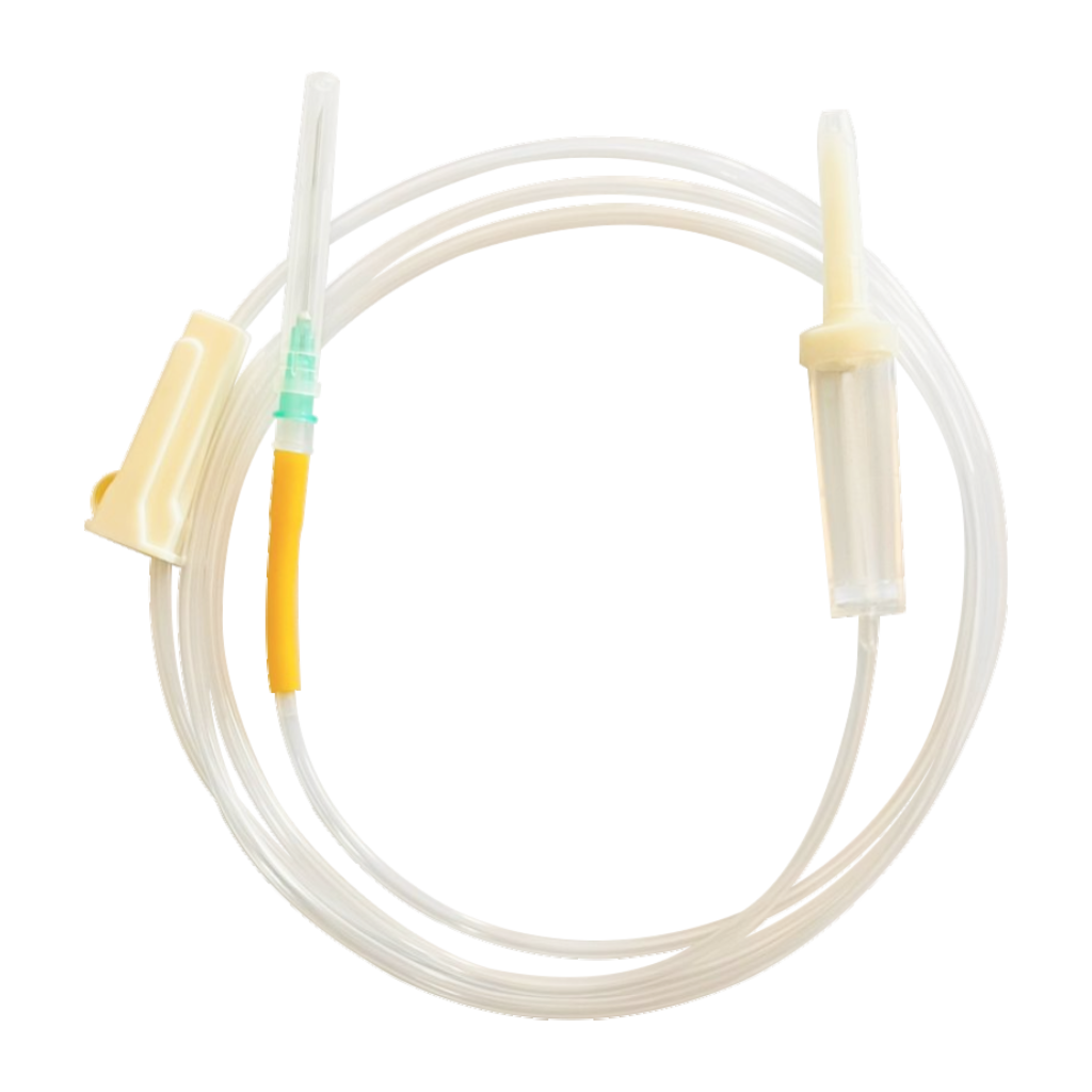 - Clear transparent medical grade polymer, flexible long drip chamber with Air Inlet with snap on cap